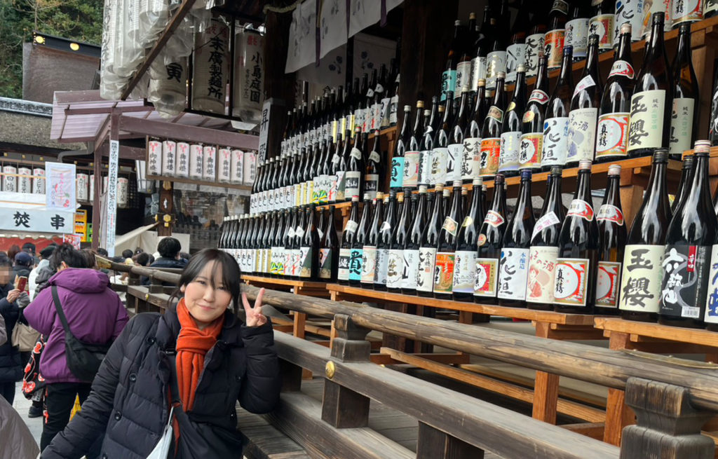 神社の境内にずらりと並ぶお酒と、甘酒のひととき